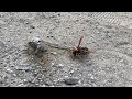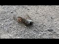 スズメバチがセミの死骸から外皮を齧り取って飛び去る。セミの胴の肉は持ち去られて空っぽ。https://www.youtube.com/watch?v=ra0hW1RO6gQ スズメバチがセミの死骸から外皮を齧り取って飛び去る。 セミの胴の肉は持ち去られて空っぽ。